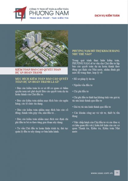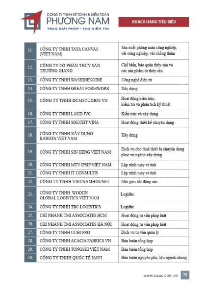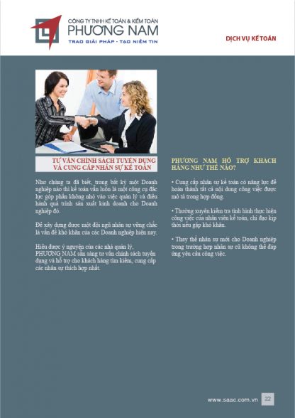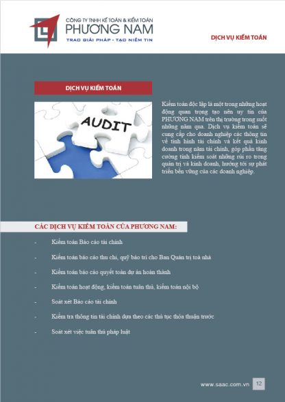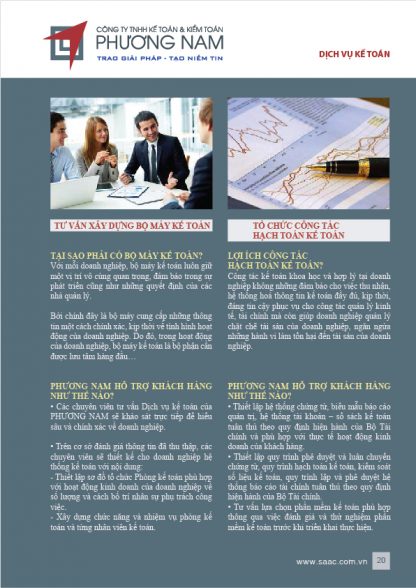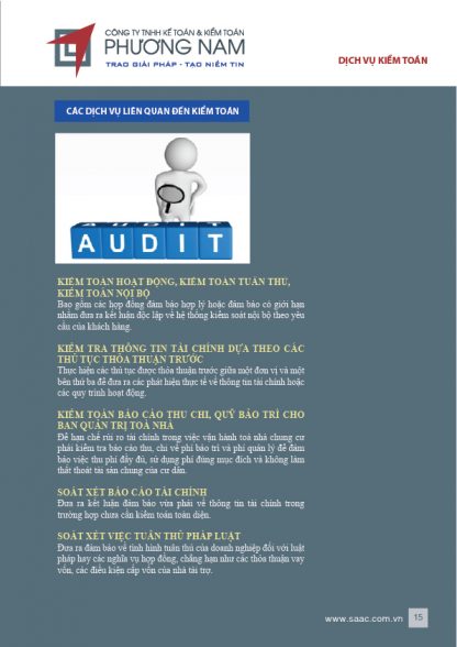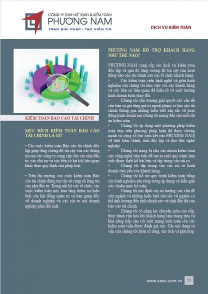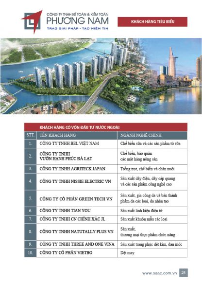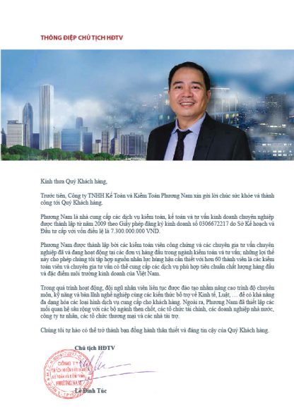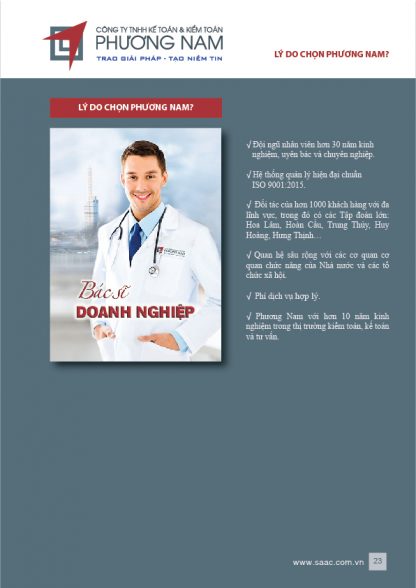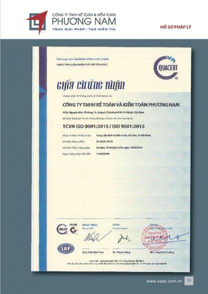 With more than 10 years providing Accounting, Auditing and Financial consulting services, Phuong Nam bring together a team of over 30 years of experience, wisdom and professionalism. Management process standard ISO 9001: 2015 is applied